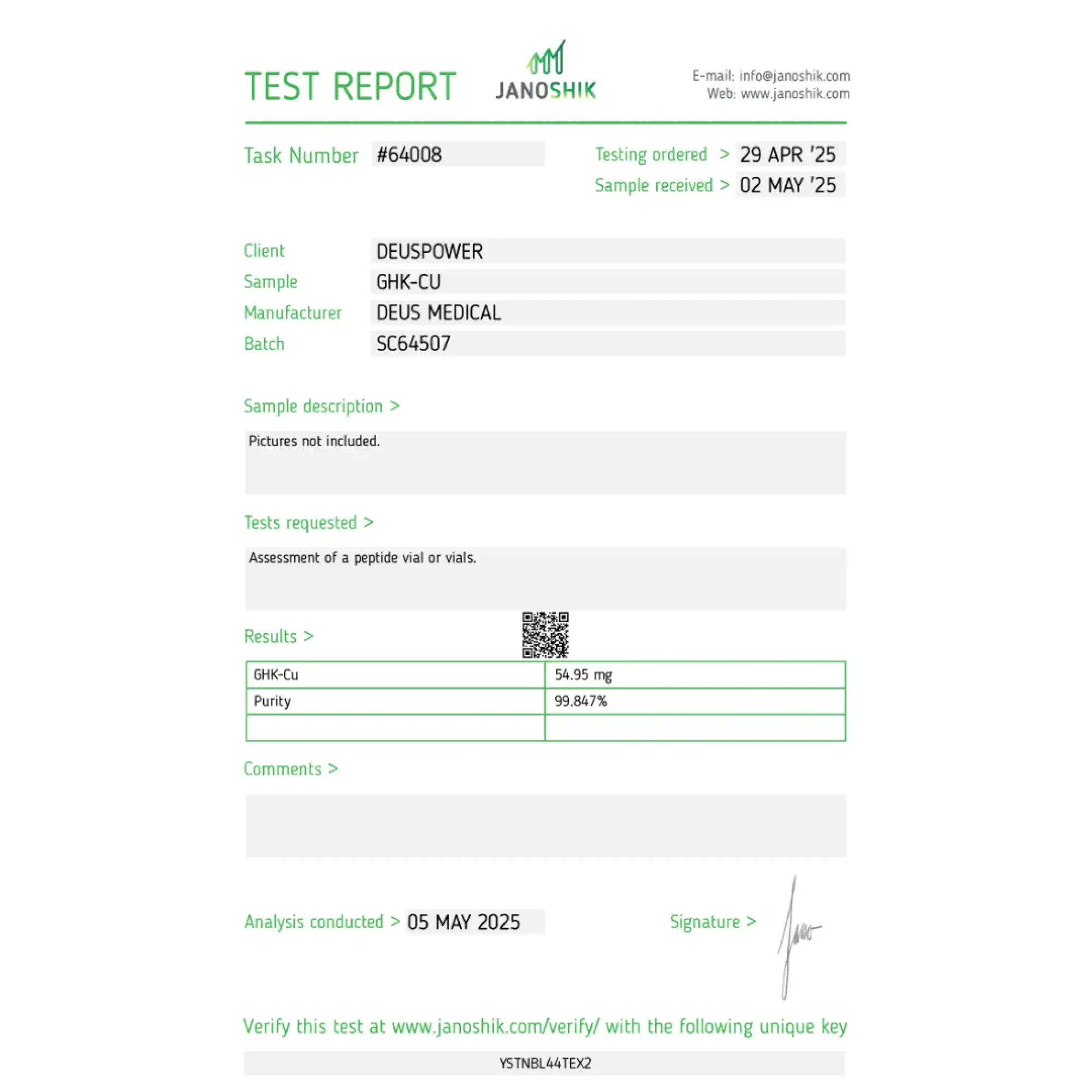 Anti-Inflammatory Properties: GHK-Cu reduces inflammation by downregulating inflammatory cytokines, thus minimizing the damage caused by chronic inflammation and facilitating tissue repair.