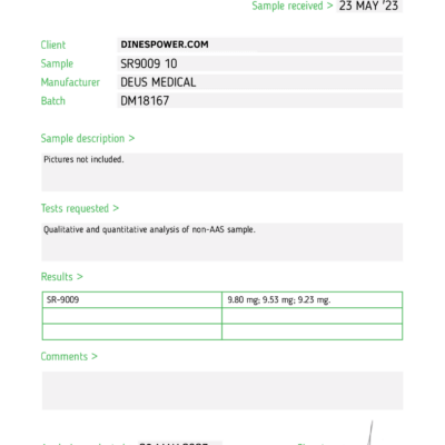 La dosis óptima de SR9009 es de 10-30 mg por día. Esta dosis puede dividirse en dos o tres tomas diarias. Los atletas experimentados con un alto nivel de condición física pueden tomar SR9009 de Deus Medical en dosis más altas, hasta 40 mg por día. Los principiantes no deben comenzar con dosis altas, especialmente en el primer ciclo de uso del preparado.