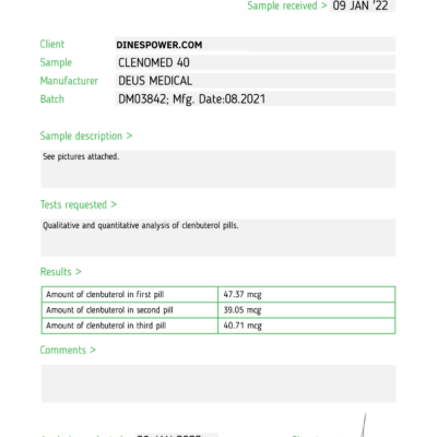 Clenomed 40 (Clenbuterol) is een stimulerend middel met een steroïde-achtige werking. Gewichtheffers en bodybuilders gebruiken het om vet te verbranden en spiermassa op te bouwen tijdens de wedstrijdvoorbereiding.