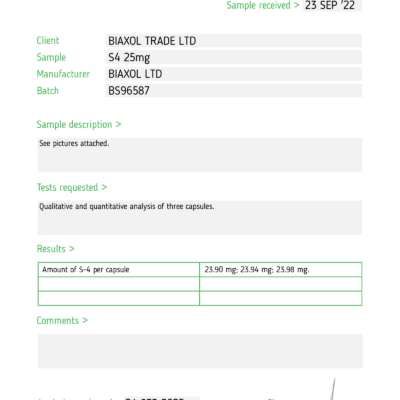 Atleten gebruiken SARM Andarine S4 25 mgtijdens de droogfase en de spiermassatoename.