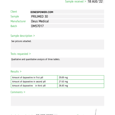 На сайте Dinespower можно купить Дапоксетин 30 мг по выгодной цене. В интернет-магазине предлагаются регулярные скидки и акции. Все препараты имеют особый код для проверки подлинности. Средства из каталога нашего магазина прошли лабораторные испытания и имеют сертификаты качества международных стандартов.