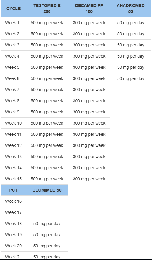 - DECAMED PP 100 (Нандролон фенилпропионат). Улучшает здоровье суставов и добавляет вторичный анаболический путь для более глубокого развития тканей.