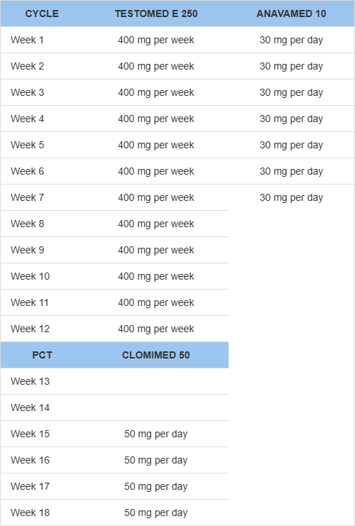 - TESTOMED E 250 — основа цикла, поддерживающая уровень тестостерона, силу и мышечную массу.
