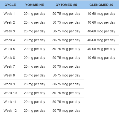 YOHIMBINE (жиросжигатель): краеугольный камень этого комплекса, который следует принимать в дозе 20 мг в день в течение всего 12-недельного цикла (обычная дозировка составляет 0,2 мг на кг массы тела). Это послужит повышению метаболической активности и будет способствовать последовательному сжиганию жира.