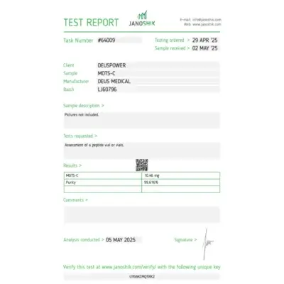 MOTS-C är känt för sitt breda spektrum av metaboliska och terapeutiska effekter, inklusive: Förbättrad metabolisk funktion: MOTS-C förbättrar insulinkänsligheten och glukosmetabolismen, vilket erbjuder skydd mot tillstånd som typ 2-diabetes och fetma. Träningsuthållighet: Genom att reglera cellulära energibanor ökar MOTS-C fysisk uthållighet och muskelåterhämtning, vilket gör det särskilt fördelaktigt för idrottare och åldrande individer. Anti-aging effekter: MOTS-C är involverat i cellulärt underhåll och skydd mot oxidativ stress, vilket erbjuder potentiella fördelar genom att bromsa åldringsprocessen och främja livslängd. Fettförbränning: Det främjar fettnedbrytning, hjälper till med viktminskning och minskar ansamlingen av fett i vävnader. Skydd mot metabola störningar: MOTS-C skyddar mot metabola störningar som fetma, insulinresistens och hjärt-kärlsjukdomar genom att förbättra mitokondriefunktionen.