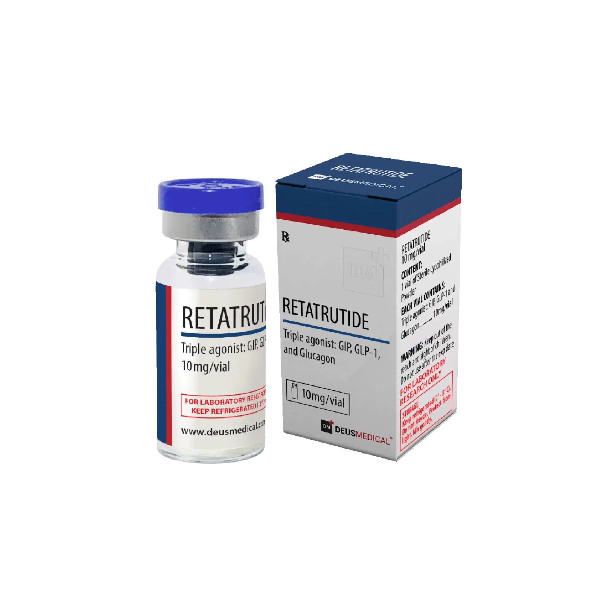 Retatrutid är en trippelreceptoragonist som verkar på GLP-1-, GIP- och glukagonreceptorer. Det används vid behandling av typ 2-diabetes och fetmahantering. Retatrutide framställs i injektionsflaskor om 10 mg, innehållande den aktiva peptiden med hjälpämnen.